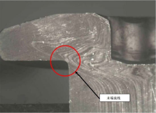 圖8-不可接受的沉窩驅(qū)動(dòng)零件的金屬流線