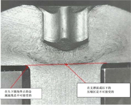本規(guī)范涵蓋了打頭螺栓、螺釘和螺柱的金屬流線形式的要求。螺栓、螺釘或螺柱制造中的打頭方式?jīng)Q定了晶體流線形式,但它也受到緊固件和模具設(shè)計(jì)以及冷鐓方式的很大影響。建議使用模具設(shè)計(jì)模擬軟件,這是一種常用做法,可提供可靠的冷鐓預(yù)測(cè),以獲得更高的金屬流線質(zhì)量。