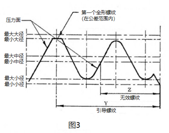 2.3.1無效引導(dǎo)螺紋:無效引導(dǎo)螺紋位于緊固件端部和第一個(gè)有效螺紋之間,螺紋壓力側(cè)的中徑對(duì)應(yīng)于該點(diǎn)的最小中徑。見圖3