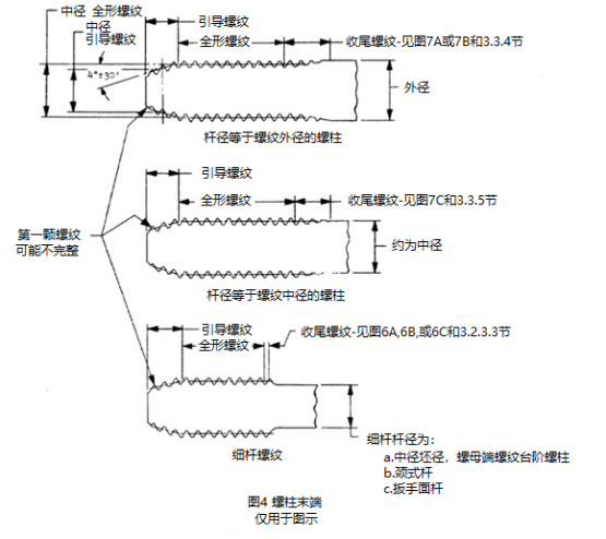 不完整的引導(dǎo)螺紋位于緊固件端部和第一個(gè)完全成形的螺紋之間,其中頂部的直徑不小于最小大直徑。參見圖3。
