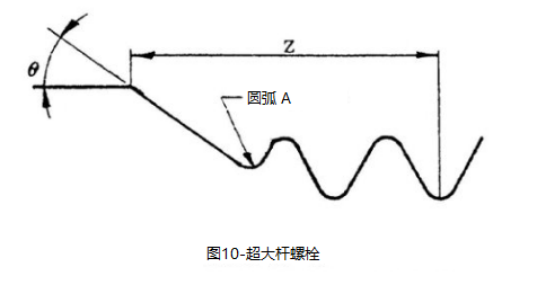 3.3.8螺紋收尾,超大桿螺栓:坯料直徑和超大桿直徑之間的過渡應(yīng)包括半徑和錐度,如圖10所示,增加了Z的長度,如下: